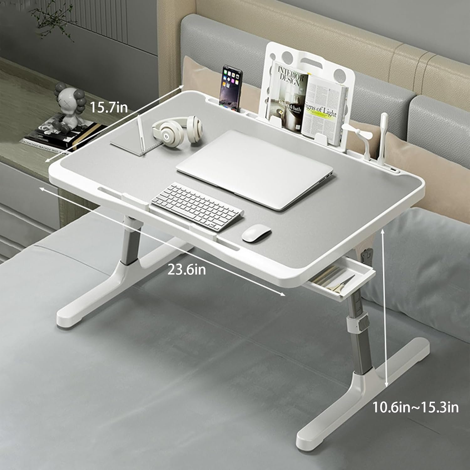 Laptop Desk for Bed, Adjustable Bed Table with USB Charge Port