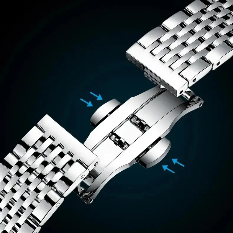 Waterproof quartz watch with a metal strap
